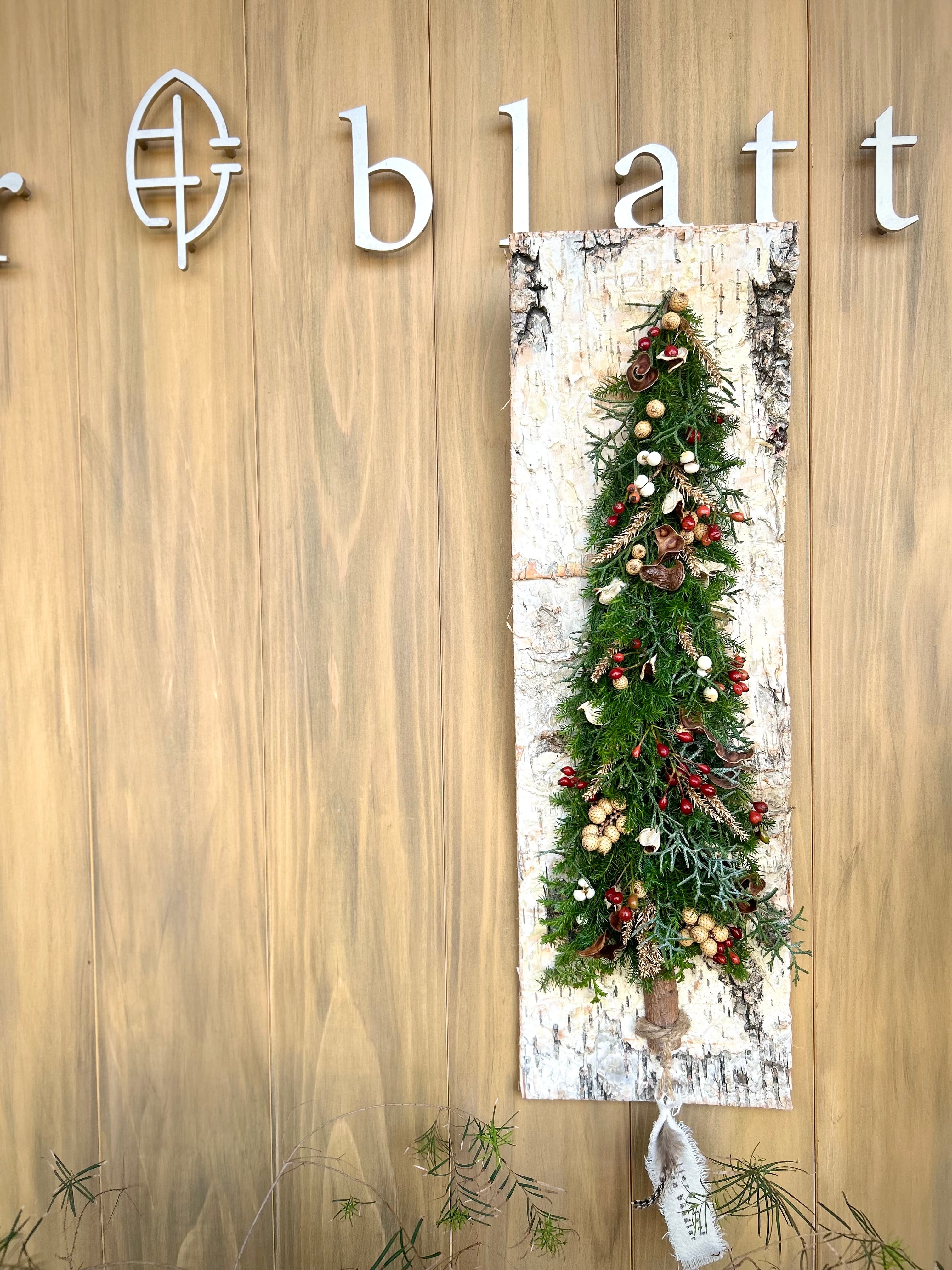 クリスマスツリーの壁飾り(白樺表皮)