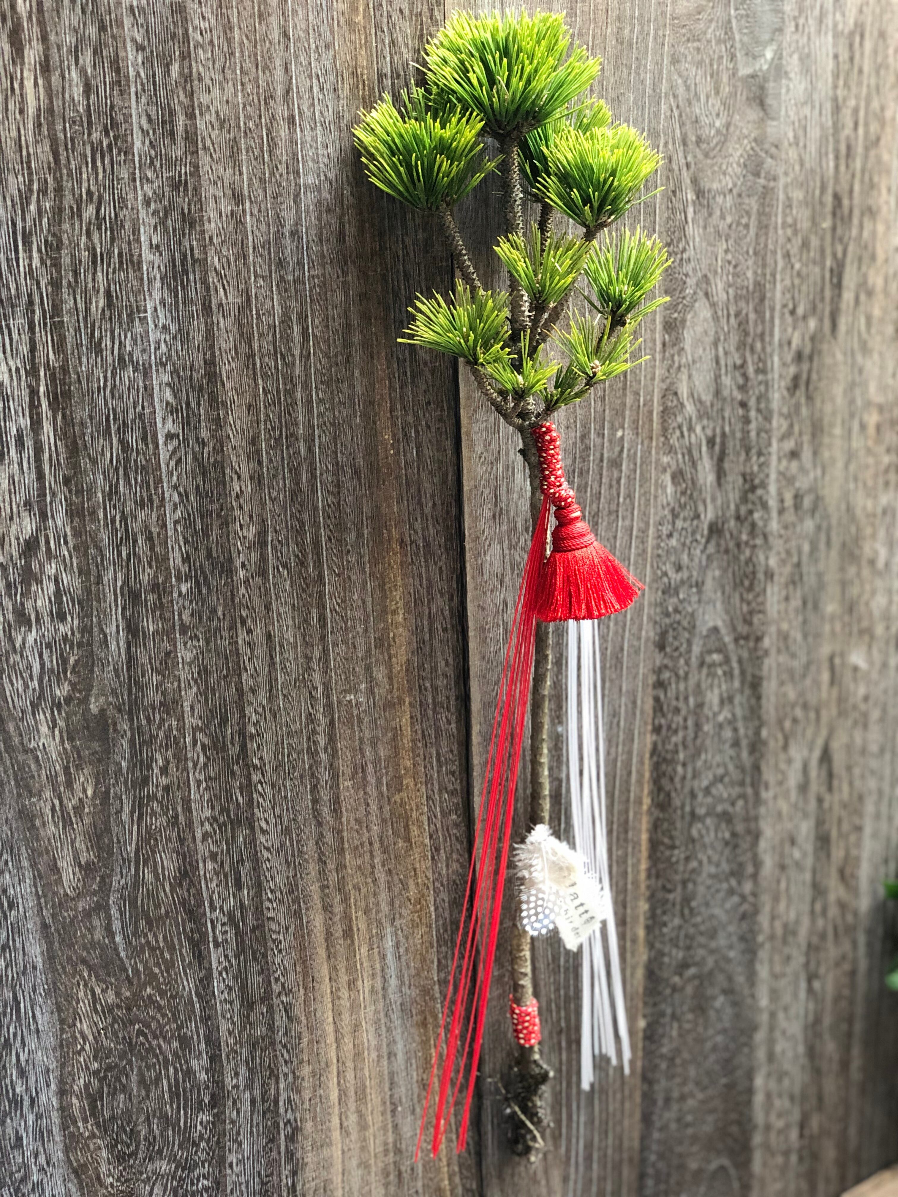 それに、タッセルをつけた紅白の水引きをあしらいました