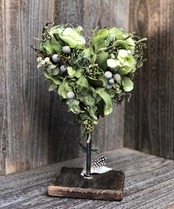 あざやかなグリーンのアジサイ、グレイッシュなグリーンのユーカリをベースにハートのかたちにしました